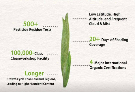 We don’t just say “ultra-fine” — we achieve it. Our leaves are stone-ground to 1,000 mesh (one of the finest grades in the world), delivering a texture so smooth it dissolves effortlessly in water or milk — no clumps, no grit.